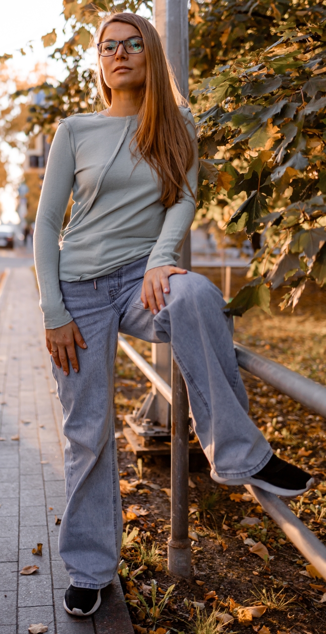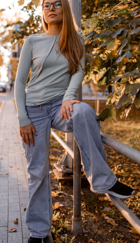 Женская блуза - лонгслив с длинным рукавом с акцентными деталями, выполнена в холодном мятном оттенке.